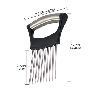 2, Stainless Steel Onion Holder and finger guards are easy to clean, you only need to wash them or put them in the dishwasher