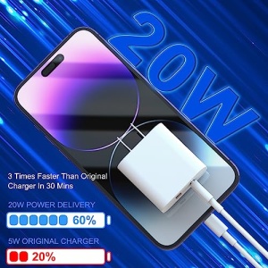- ♦Power Delivery Fast Charging: The USB-C port supports a maximum power output of 20W. iGENJUN USB C Charger Offers fast and efficient charging up to 3 times faster than a 5W charger. Charge your iPhone 14 up to 60% capacity in just 30 minutes with the original cable.