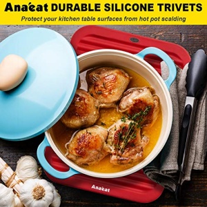 - 【Durable & healthy】It’s still as new as before after many uses. ANAEAT trivets are made of 100% BPA-free food grade silicone. They won’t mold, No smell and nontoxic, using them is absolutely safe for your health and our planet. ANAEAT trivets are thicker than others to provide long lasting durability and better protection for your counter tops while maintaining their flexibility.