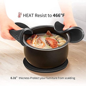 ✔️ LARGER SIZE AND SUPERIOR HEAT PROTECTION : Size is at 7.28 x 7.28 x 0.32 inches, they’re larger and thicker than most of the competitors.Heat resistant from -40°F to 446°F (-40°C to 230°C), hey’re thick enough to protect your table while serving hot dishes and large enough for any round pot or pan.