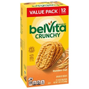 Details: Start your morning off right with lightly sweet and crunchy belVita Golden Oat Breakfast Biscuits. Specially baked, these bulk baked biscuits contain slow-release carbs that break down gradually in the body to deliver delicious, steady energy all morning long so you can enjoy these with your morning coffee, yogurt and fruit or as an instant breakfast food no matter what the morning brings. Each 50 gram serving of these bulk breakfast cookies contains 19 grams of whole grain, 2 grams of fiber and B vitamins. A simple addition to your morning, these cholesterol-free biscuits for breakfast contain no high-fructose corn syrup and no artificial colors, flavors or sweeteners. What are you waiting for? These convenient breakfast biscuits made with wholesome grains are a great alternative to traditional breakfast snacks. This bulk breakfast food is also an energizing alternative to snack bars and a wholesome addition to college care packages. Each individual snack pack contains four belVita Golden Oat Biscuits for you to enjoy on the go, at the office or at home for lasting morning energy.