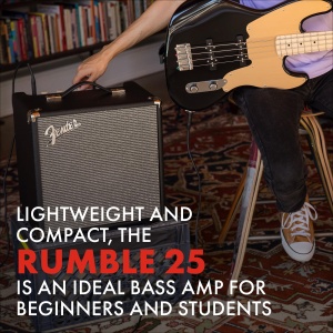 Details: From the company that invented the electric bass amp, the The Fender Rumble 25 V3 Bass Amplifier is a mighty leap forward in the evolution of portable bass amps. Its diminutive stature leaves the heftiness to its sound output, not its weight. Rumble 25 uses every last electron of its 25 watts to pump out a surprisingly rich and balanced sound. Plug in your MP3 player into the 1/8 inch Auxiliary input jack and you’re ready for showtime. Or practice privately with the 1/4 inch headphone output jack that also mutes the speaker output. This amp features a 3 band EQ that allows for tone shaping. Whether it”s for an acoustic gig or backstage rehearsal, Rumble 25 delivers legendary Fender tone in a remarkably portable package. Its dimensions are 15.1×19.25×20 inches and it weighs 22.8lbs