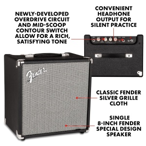 Fender Rumble 25 V3 Bass Amp for Bass Guitar, Bass Combo, 25 Watts, with 2-Year Warranty 8 Inch Speaker, with Overdrive Circuit and Mid-Scoop Contour Switch