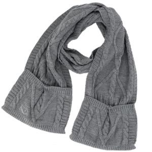 Details: Keep warm and cozy in this oversized, thick, cable knit scarf with large front pockets for keeping hands warm or storing personal items like a phone, keys, and tissues. Luxuriously soft and the perfect length.