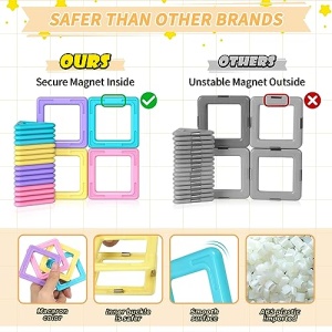 - 【SECURITY UPGRADE】Do you want safe toys for kids? Our toys have been upgraded in terms of safety, Safer than any other magnetic block on the market. Magnetic tiles is made of safe and environmentally friendly ABS material, which is healthy and non-toxic, and the edges of each magnetic sheet have been processed, which is very suitable for children to play and will not cause harm to the body.