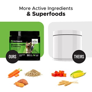 - MADE FROM NATURALLY DERIVED INGREDIENTS – Packed with Cranberry, D-Mannose, and Marshmallow Root, and Echinacea our Pet Honesty Cranberry Bladder chews help support your dog’s immune system, maintain a healthy urinary tract, and balance urine pH.