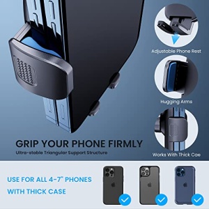 - [Upgraded Metal CD CLIP] Phone holder for car uses a built-in metal clip that is 20 times more stable than other ordinary plastic clips. Effectively solves the problem of falling off and sagging. Newly CD clip forms an ultra-stable triangular support structure that makes it possible to grip the phone steadily even on bumpy roads.