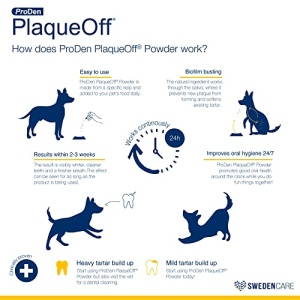 - Cat & Dog Teeth Cleaning Powder: Palatable ProDen powder is formulated with natural seaweed to help reduce plaque and tartar buildup over time. It’s easier than brushing and tastier than toothpaste!