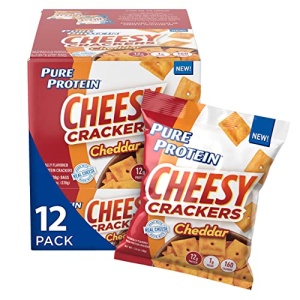 • HIGH PROTEIN, LOW SUGAR(1) SNACK: Pure Protein Cheddar Cheesy Crackers contain 12g of protein and 1g of sugar per serving, making them a perfect high-protein snack.
