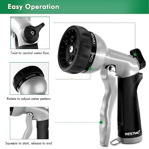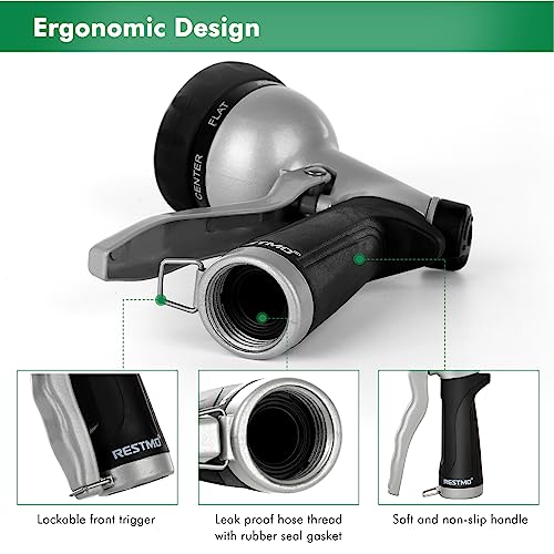 RESTMO Garden Hose Nozzle, Heavy Duty Metal Water Nozzle with 7 Adjustable Spray Patterns, High Pressure Hand Sprayer with Flow Control, for Watering Plants & Lawns, Washing Cars & Pets, Black