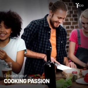 TICO Ultra Sharp 8 inch Chef’s Knife – German Carbon Steel Blade, Ergonomic Pakka Wood Handle – Professional Kitchen Knife for Chopping, Cutting, Thinly Slicing Meats & Vegetables