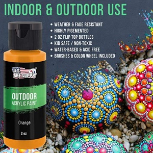 • 24 High-Quality Vivid Colors in Large 2 oz. Bottles: A full selection of 24 unique, eye-catching vibrant water-based acrylic colors that allow you to create stunning vivid masterpieces. U.S. Art Supplies superior performing weather and fade resistant artist outdoor acrylic paint will bring your artwork to life. They’re ideal for use by professional artists, as well as the young aspiring artist.