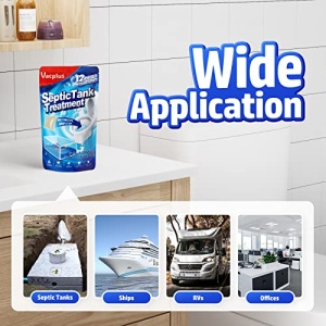 • WIDE APPLICATION: The neutral ingredients make the septic treatment suitable for almost all septic systems and sewage systems. It can be widely used for household septic tanks, commercial sewage tanks, and sewage tanks in boats or RVs. Just 1 septic treatment keeps numerous septic tank problems away!