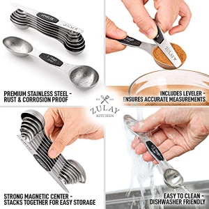 - HASSLE-FREE, ZULAY GUARANTEE: We love and take pride in our nesting measuring spoons and back these up with a lifetime guarantee. If there are ever any issues, just contact us, and we will make it right. Chances are that you will always nail the recipes that require precisely measured ingredients.